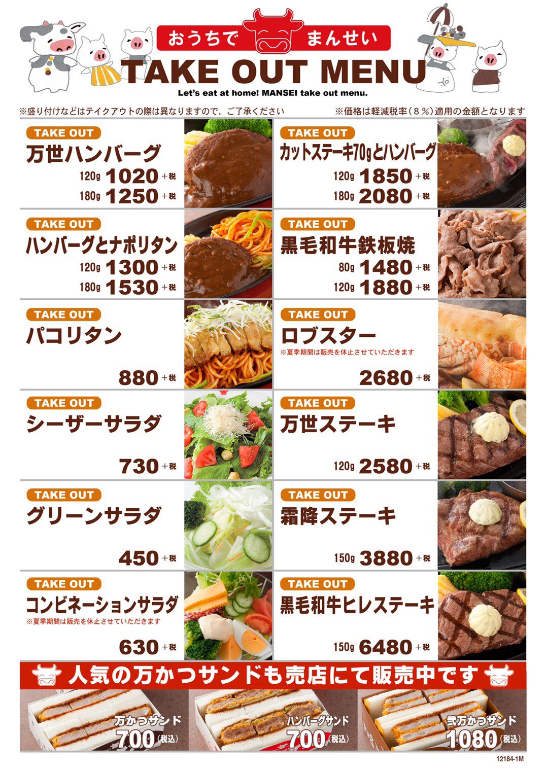 肉の万世秋葉原本店ニコニコ和牛マーク Twitterissa おうちでまんせい テイクアウトも好評販売中 お電話一本でご指定のお時間に出来立てをお作りします お問い合わせは 0352941204 肉ビル洋食4階へ 添付メニューに限ります Akiba 万世 テイクアウト