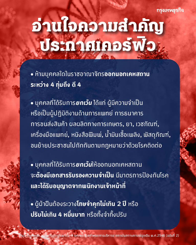 เคอรฟว ใหมลาสด ไทยสรางไทย จรฐบาลลดเวลาเคอรฟว เรม 2300 น. ศนยขอมลโควด เตอน อยาแชรขาวปลอม เคอรฟวทวประเทศ เรม 23 เมยน ยำ รฐบาลไมมประกาศเคอรฟว เพยงแตควบคมการเปด-ปดสถานท.